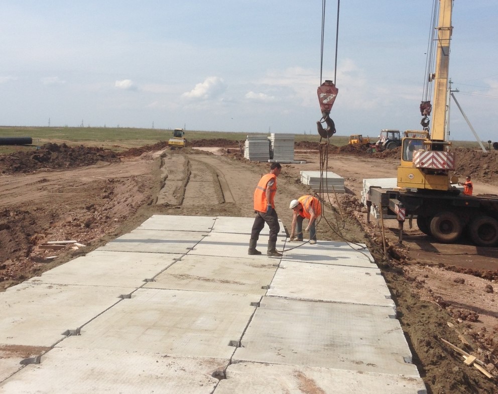 Для укладки дорожных плит требуется использование подъемной техники, поскольку вручную поднять блоки, весящие несколько тонн, просто невозможно. Для точного выравнивания перед укладкой натягивается шнур вдоль обочины будущей дороги. Этот шаг необходим для обеспечения ровности покрытия.